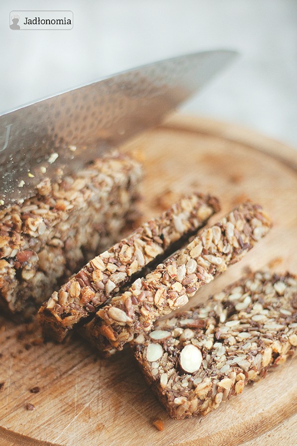 Ok, guru 😀 oświeć mnie, co zrobiłam źle, że chlebek i tak mi się kruszył? Ilości składników były dodane trochę „na oko”, ale bardzo przyzwoicie. Poza tym zamieniłam migdały na pestki z dyni. I leżał w piekarniku odrobinę na długo, bo przysnęłam podczas pieczenia 😀 nie spalił się, ale nie wiem ile dłużej leżał 😀