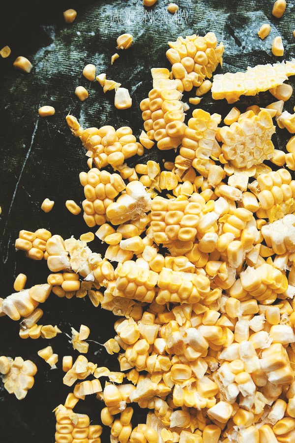 Nie myśląc wiele wybiegłam z marketu, skręciłam w stronę domu zahaczając o warzywniak i wpadłam do kuchni z kolbami kukurydzy oraz jednym ziemniakiem. I w kwadrans przygotowałam swoją meksykańską zupę z kukurydzy – gęstą, słodką, wegańską i nieprzyzwoicie pyszną. Bez żadnych gotowych mieszanek, za to z mnóstwem kukurydzy i aromatycznych przypraw.