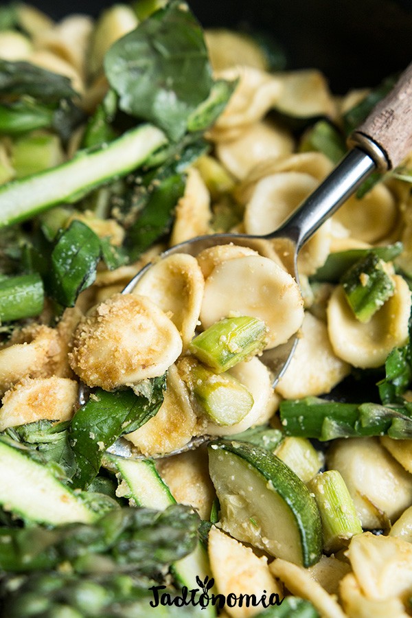 Tradycyjnie w Apulii orechiette podaje się z dzikimi brokułami, w Salento oblewa się je pomidorowym sosem sugo, w okolicach Neapolu można spotkać je w towarzystwie zielonego groszku, a na Sycylii z mnóstwem dzikiego kopru. Współcześni, włoscy kucharze niezwykle chętnie serwują je też z kurkami, bobem lub właśnie szparagami. Dlaczego ten makaron tak dobrze pasuje do warzyw i lekkich, roślinnych sosów? Oczywiście ze względu na jego niepowtarzalny kształt: małe kluseczki cudownie zatapiają się w warzywach, oblepiają aromatyczną oliwą i wchłaniają delikatny smak jarzyn. Najlepiej czują się w towarzystwie zielonych roślin, czosnku oraz oliwy; bez ciężkich sosów i dużej ilości ziół. Wystarczy krótko je obgotować, połączyć z ulubionymi warzywami i basta!