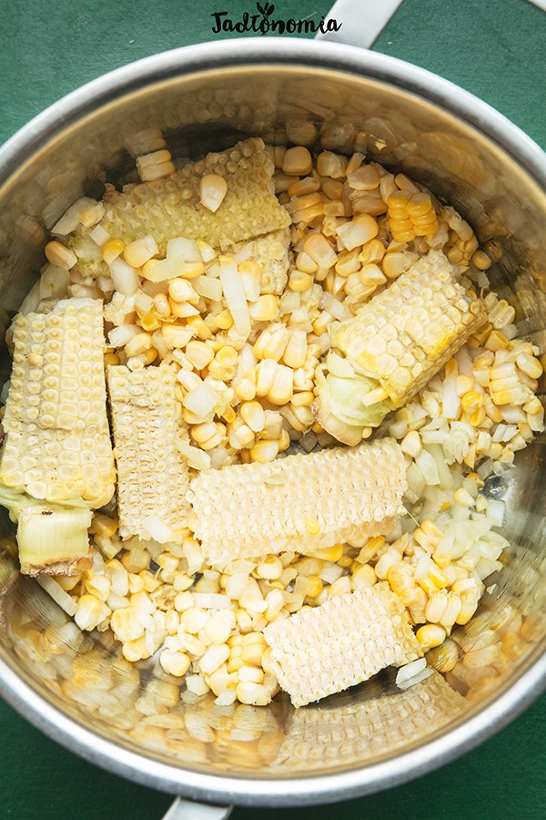 Muszę się przyznać, że przygotowując zupę wyjadłam sporo surowej kukurydzy prosto z miski, do której ją ścinałam. Choć odrobinę mączysta, była pyszna i świetnie pasowałaby do jakiejś surówki – tylko czy jedzenie surowej kukurydzy jest wskazane? Hm.